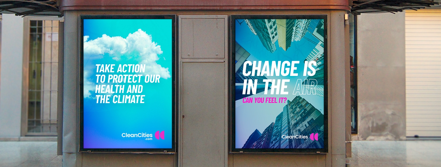 Desarrollamos la identidad partiendo de los pilares de la campaña. El concepto, “Change is in the air” (El cambio está en el aire), recuerda la idea de que algo nuevo está llegando y no se puede detener: nuestra salud y la del planeta están en juego. Este cambio está literalmente en el aire y se decide en nuestras ciudades. ¿Se puede sentir? El tono de voz es inclusivo y pragmático, urgente pero optimista.